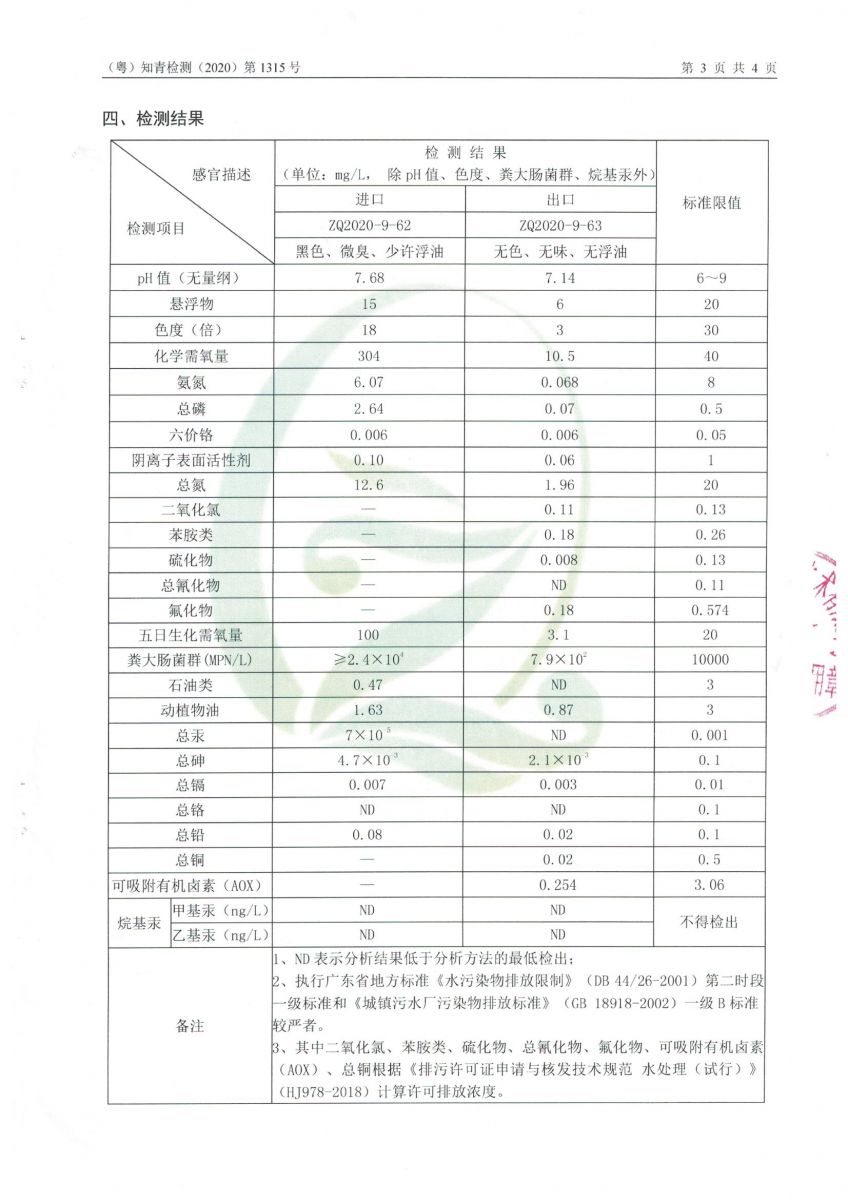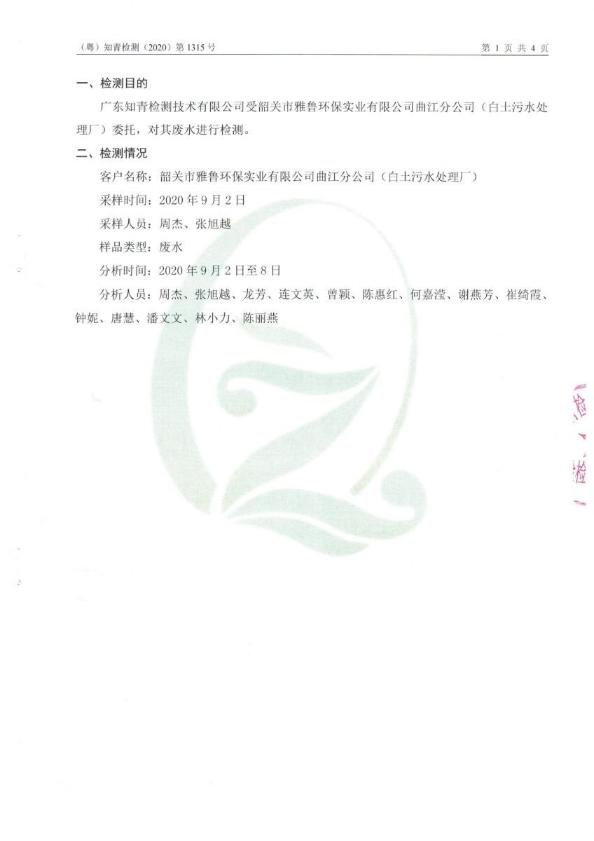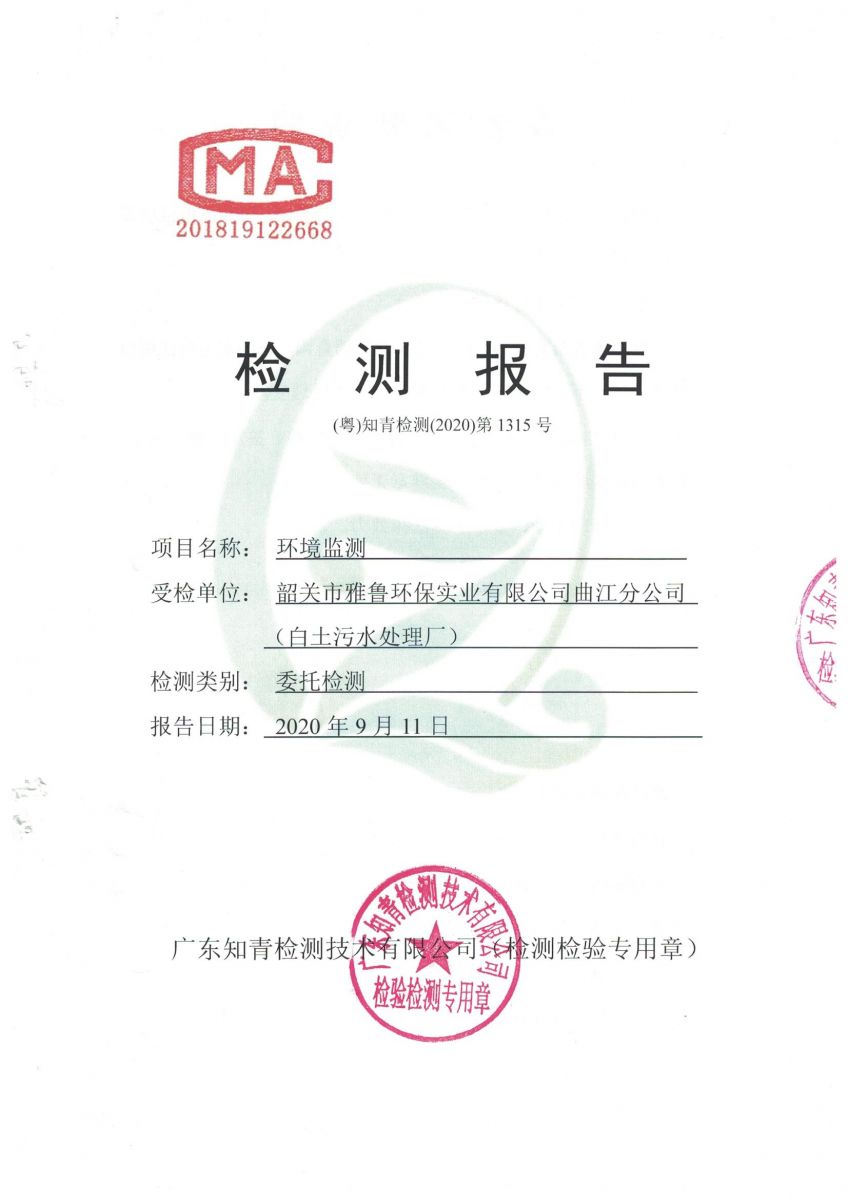 白土污水處理廠2020年7月第三方水質(zhì)檢測(cè)報(bào)告